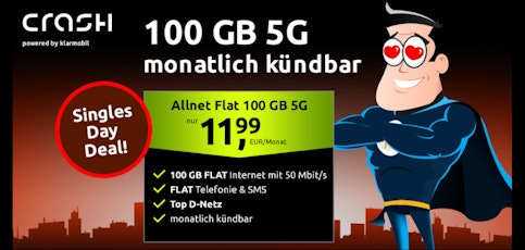 - Crash 100GB 5G Allnet-Flat für 11,99€ mtl. bei vitrado.de