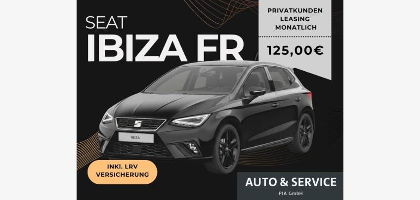 - Seat Ibiza (116 PS) für 125€ im Monat + 1.490€ Bereitstellung bei Leasingmarkt.de