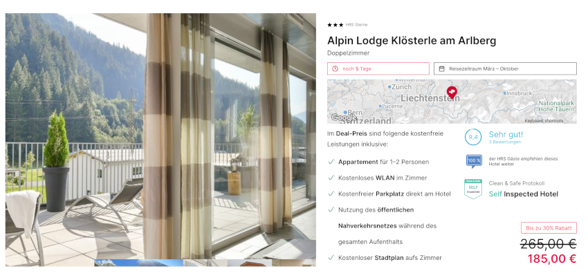 - Alpin Lodge Klösterle am Arlberg Doppelzimmer für 185€ bei hrs.de (statt: 265€)