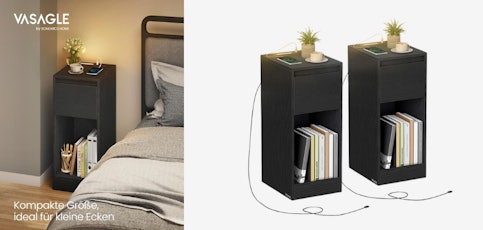 - VASAGLE Nachttisch mit LED Beleuchtung USB Anschlüssen für 39,99€ inkl. Versand bei songmics.de (statt zuvor: 51€)