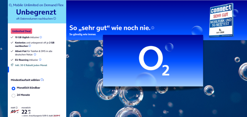 - o2 Unlimited Max Flex für 22,99€ mtl. bei o2-online.de