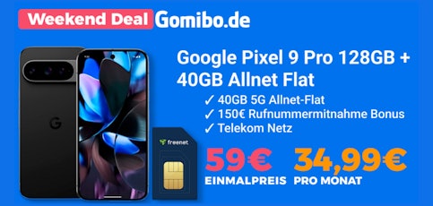 - Google Pixel 9 Pro im 40GB Telekom-Tarif für 34,99€ mtl. bei Gomibo.de