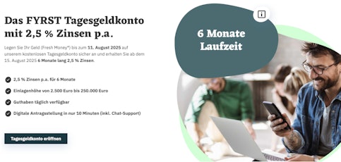- FYRST Tagesgeldkonto - 2,50% Zinsen p.a. für 6 Monate sichern 🔥