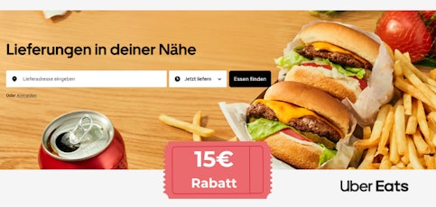 - Uber Eats: Je 15€ Rabatt auf die ersten 2 Bestellungen bei ubereats.com/de