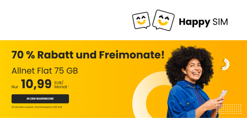 - Happy SIM Allnet-Flats inkl. 5G ab 5,99€ pro Monat