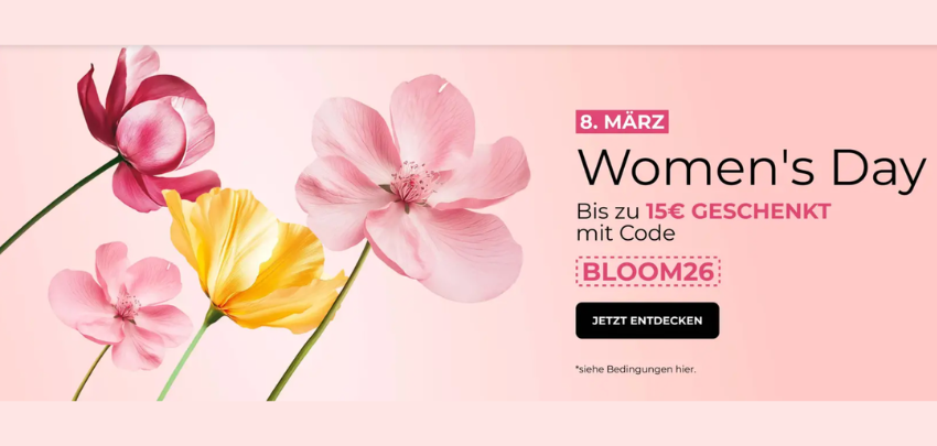 Zum Weltfrauentag gibt’s bei Yves Rocher eine schöne Rabattaktion für euch selbst – oder als Geschenkidee. Mit dem Code BLOOM26 spart ihr je nach Warenkorbwert direkt im Bestellprozess.