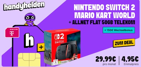 - Nintendo Switch 2 im 50GB Telekom Tarif bei Handyhelden.de