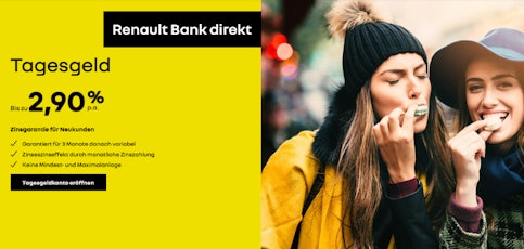 - 2,90% p.a.Tagesgeld Zinsen für 3 Monate bei renault-bank-direkt.de