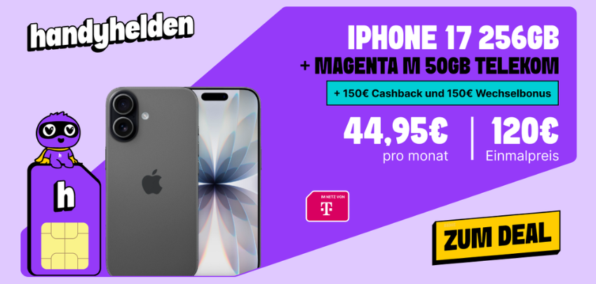 - Apple iPhone 17 mit 50GB Telekom Magenta Allnet-Flat bei Handyhelden.de