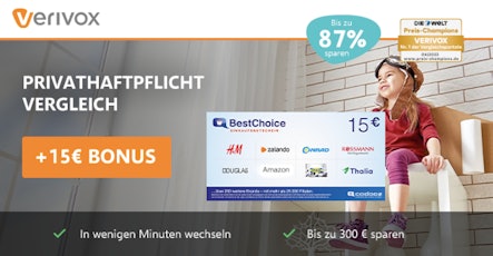 Eine private Haftpflichtversicherung ist von großer Bedeutung, da Schäden an Personen oder Eigentum schnell entstehen können, unabhängig von der Ursache. Um euer eigenes Vermögen in solchen Fällen zu schützen, ist der Abschluss einer Privathaftpflichtversicherung ratsam. Bei Verivox könnt ihr Versicherungen vergleichen und die passende Option für euch finden. Und wenn ihr einen Vertrag abschließt, erhaltet ihr zusätzlich einen 15€ BestChoice-Gutschein.