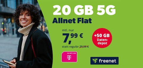 - Highlights: 20GB 5G/LTE50 | Allnet-Flat | EU-Roaming | Telekom-Netz