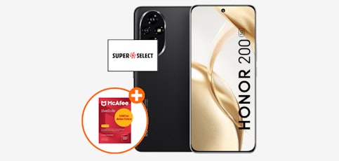 - Honor 200 + gratis McAfee für 1€ mit 25 GB Super Select S Allnet-Tarif für nur 9,99€/Monat bei tarife.mediamarkt.de