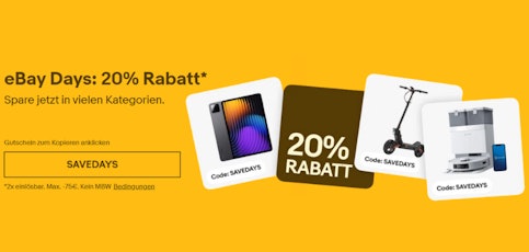 - eBay* Save Days: 20% Rabatt auf Technik & Co.
