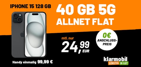 - Apple iPhone 15 mit Vodafone-Allnet-Flat bei klarmobil.de