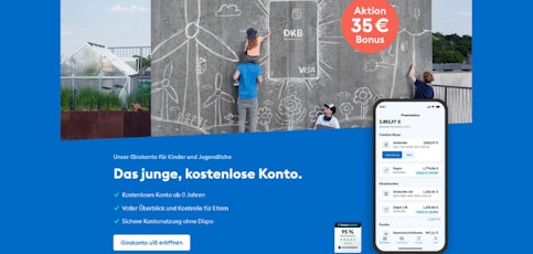 - DKB: 35€ Taschengeld-Bonus für jedes kostenlose u18-Kinderkonto