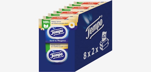 - 16x 42 Tempo Feuchttücher "Sanft & Pflegend" für 18,84€ inkl. Prime-Versand bei Amazon.de (Preisvergleich: 8 x 3,35€ = 27€)