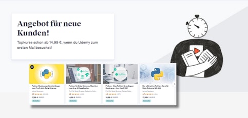 Udemy Kurse für 15€ - Neukundenangebot, z.Bsp. Kurse über ChatGPT, Python-, Statistik- oder AI-Kurse