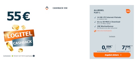 - 55€ Logitel Cashback sichern im Allmobil Flat L Tarif mit 14 GB LTE bei logitel.de