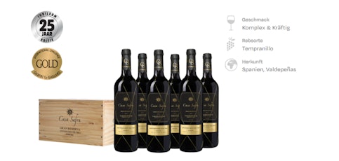 - Gold Edition! 6 Flaschen Casa Safra Gran Reserva in Holzkiste für 49,99€ bei dieweinboerse.de (statt: 67€)