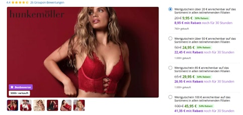 - Hunkemöller-Gutscheine mit 54% Rabatt bei groupon.de