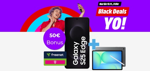 - Samsung Galaxy S25 Edge im Telekom Allnet Flat 20GB Promotion für 24,99€ monatlich bei tarife.mediamarkt.de