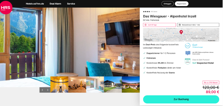 - Alpenhotel Inzell für 89€/Zimmer bei HRS.de (statt: 129€)