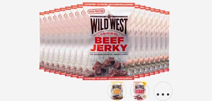 16x Wild West Beef Jerky | Original | 60 g für 35,90€ inkl. Versand bei iBood (Preisvergleich: 64€= 16x 4€)