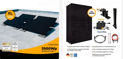 - Balkonkraftwerk Glas-Glas bifazial Komplettset Flachdach/Boden für 579€ inkl. Versand bei solago.de (statt 950€)