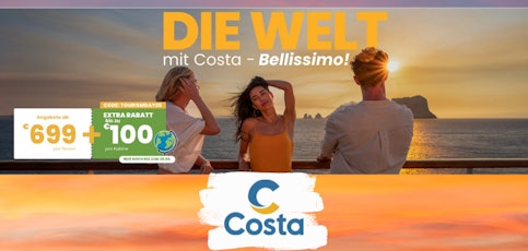 - All-Inklusive-Reisen 100€ Rabatt pro Kabine bei costakreuzfahrten.de