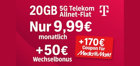- Highlights: 20 GB 5G/LTE + 50GB Datendepot | Allnet- & SMS-Flat | Telekom-Netz | 50€ Wechselbonus