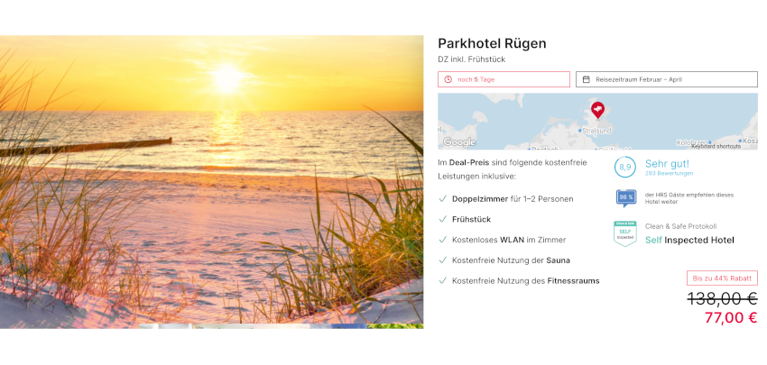 - Parkhotel Rügen DZ inkl. Frühstück für 77€ bei hrs.de (statt 138€)