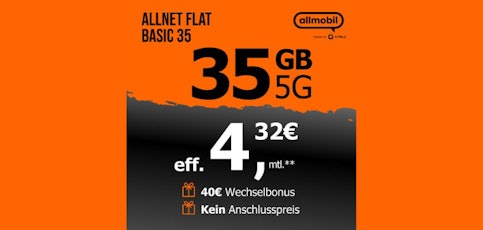 Allmobil Flat M: 35GB für 5,99€ mtl.
