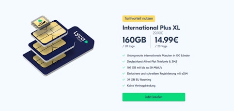 • Lyca Plus XL 160 GB für 14,99€ bei lycamobile.de (statt 30€)