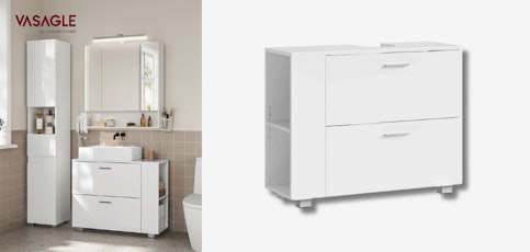 - VASAGLE Waschbeckenunterschrank mit offenen Fächern für 52,99€ inkl. Versand bei songmics.de (vorher 75€)