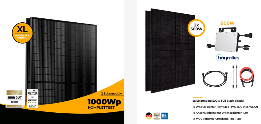 - Balkonkraftwerk mit zwei 500 Watt Modulen | umweltfreundlich Energie erzeugen 🌱 | platzsparend | leichte Montage | inkl. Wechselrichter ⚡ | für DIY-Fans