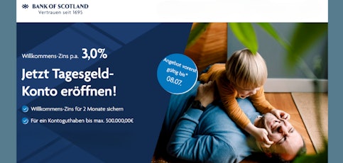 - Tagesgeldkonto mit 3,0% Zinsen p.a. bei bankofscotland.de