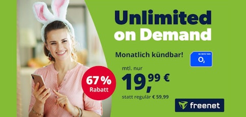 Nie mehr langsam surfen oder euer Datenvolumen aufbrauchen? Das geht mit der o2 Unlimited on Demand Allnet-Flat, die ihr jetzt bei Freenet zu Top-Konditionen bekommt!