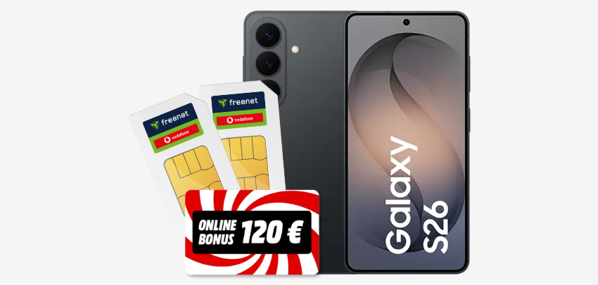- Samsung Galaxy S26 (512GB) mit Vodafone Doppelkarte-Tarif bei Media Markt