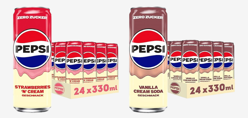 - Pepsi Zero Zucker Strawberry 'n' Cream (24 x 0,33l) für 17,99€ inkl. Prime-Versand bei amazon.de (Preisvergleich: 24€)