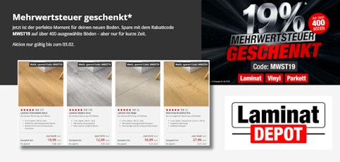 - Mehrwertsteuer geschenkt auf Laminatböden bei LaminatDEPOT.de
