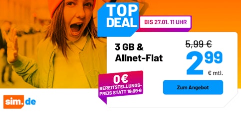 19,99€0€ (24 Monate) |19,99€9,99€ (mtl. kündbar) - Angebote gültig nur bis 27. Januar