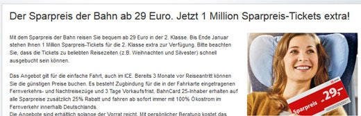 - Deutsche Bahn Sparpreise – findet man über die ganz normale Suche