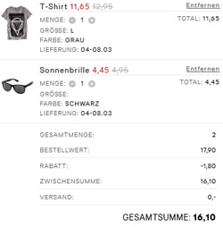 Schreiben Kommentar schreibenHallo, der Code für den 5,- € Gutschein lautet: 1304 Viel Spaß beim Shoppen!!! ;-)
