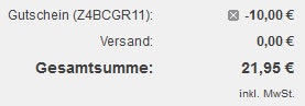 Dieser Gutschein konnte nicht auf alle Artikel Ihres Warenkorbes angewendet werden. (Gutscheincode: Z4BCGR11)