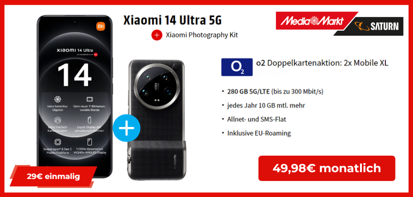 - Xiaomi 13T Pro für einm. 1€ + gratis Xiaomi Smart Blender im 20 GB Vodafone-Tarif für 24,99€ mtl. bei Media Markt