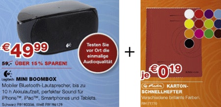 15€ Staples Gutschein (Mindestbestellwert: 50€) - 50€ iTunes Karten für 35€ / Logitech Mini BoomBox für 35€