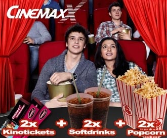 - 2 Cinemaxx Tickets + 2 Softdrinks (0,5 l) + 2 Popcorn (1,6 l) für zusammen 19,90 mit 10%-Gutscheincode dailydeal4fashion