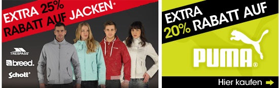 - 25 % auf Jacken und 20 % auf PUMA – Rabatt ist in den Preisen schon eingerechnet