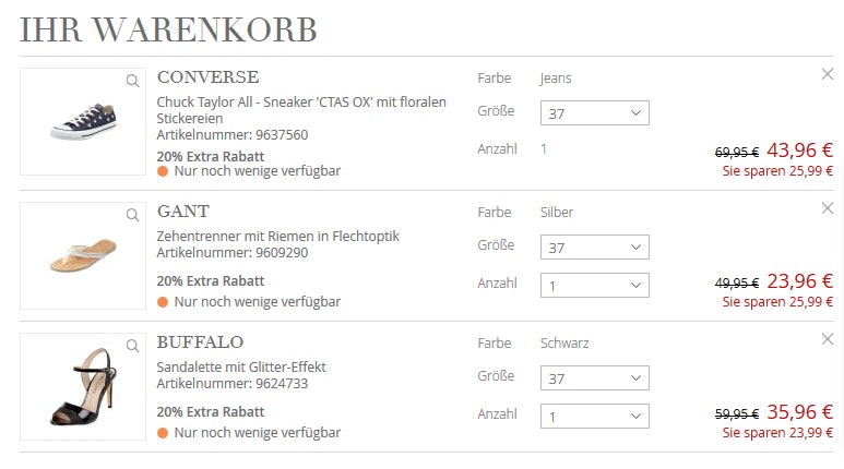 Hier seht ihr noch einmal, wie das Ganze in eurem Warenkorb aussehen könnte: