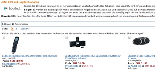 Amazon scheint einen ziemlich guten Draht zu Logitech haben und so startet zwei Monate nach der letzten Aktion Anfang Dezember wieder eine neue 20% Promo, wenn man mindestens 2 Logitech Produkte kauft. Einen Mindestbestellwert gibt es dieses Mal aber nicht.
